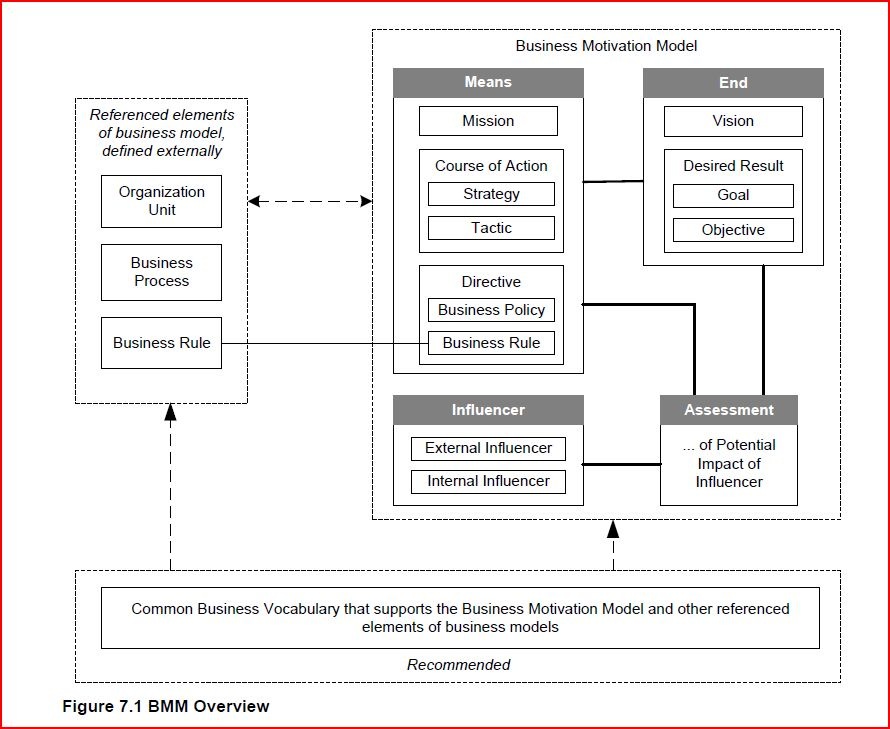 I’d come across several articles mapping out the Business Motivation Model and Archimate, with varying degrees of success. The main issue is the granularity of goals and how that doesn’t really help with the difference between board-level goals and local, more project level goals. In a way, that may be an advantage. The best was this article at bizzdesign.com